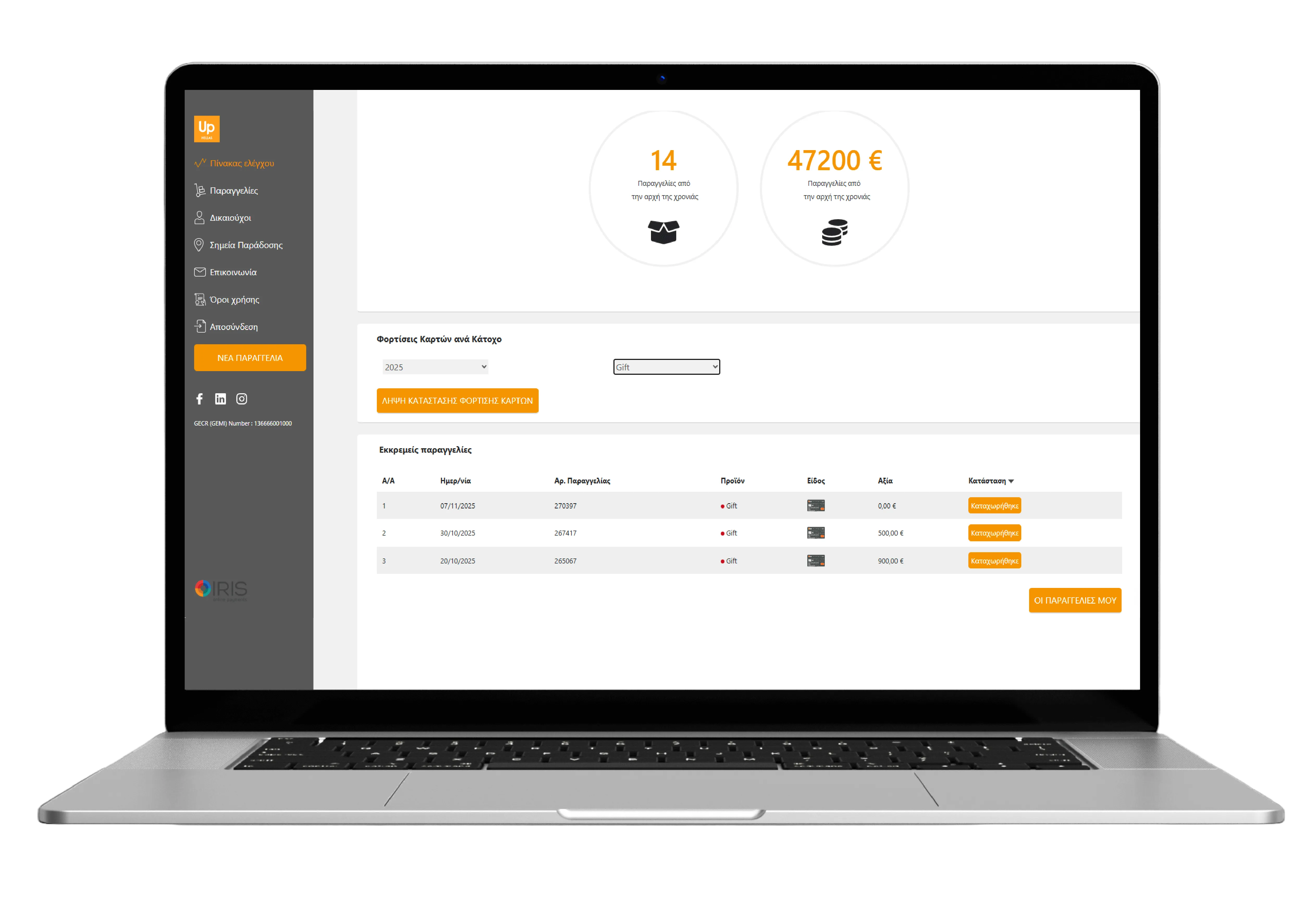 Ξέχνα τις πολύπλοκες διαδικασίες. Με την Up Gift ανταμείβεις την ομάδα σου μέσα σε λίγα λεπτά. Ιδανική για επιβραβεύσεις της στιγμής, δώρα έκπληξη ή διαγωνισμούς.