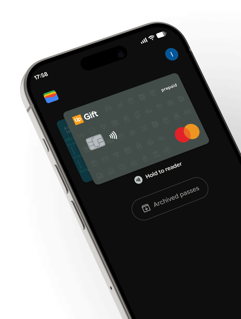 Η Up Gift είναι η δωροκάρτα της Up Hellas. Είναι μια προπληρωμένη κάρτα που μπορείς να χρησιμοποιήσεις σε εκατοντάδες συνεργαζόμενα καταστήματα και e-shops σε όλη την Ελλάδα, όπως μια κανονική κάρτα Mastercard.